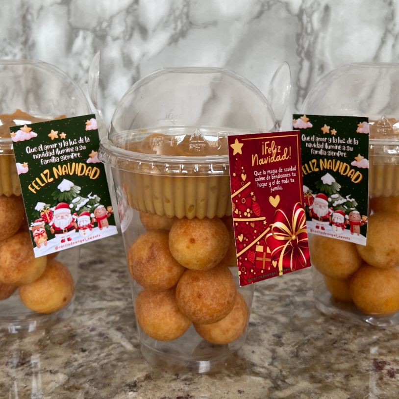 CONTIENE 8 MINI BUÑUELOS, 1 NATILLA PERSONAL, CUCHARITA Y TARJETA NAVIDEÑA