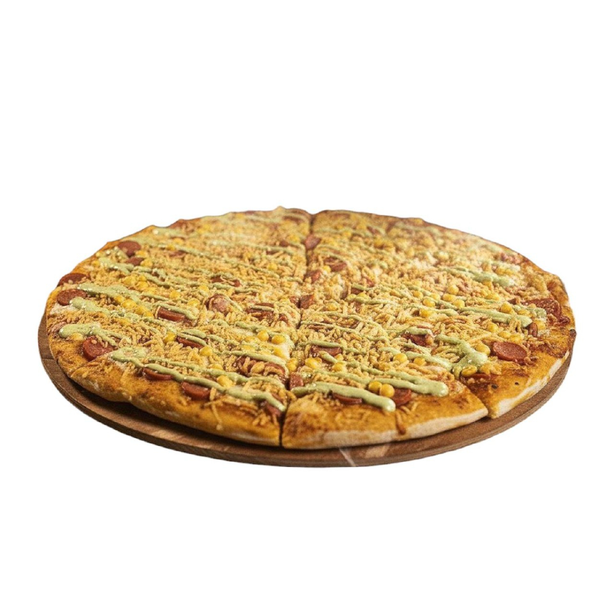 PIZZA CON QUESO MOSARELLA - PAPA CHONGO- CHORIZO -BUTIFARRA- MAIZ -SALSA TARTARA Y SALSA DE PIÑA CON POSIBILIDAD DE DIVIDIRSE DE 8 - 12 - 16 PORCIONES