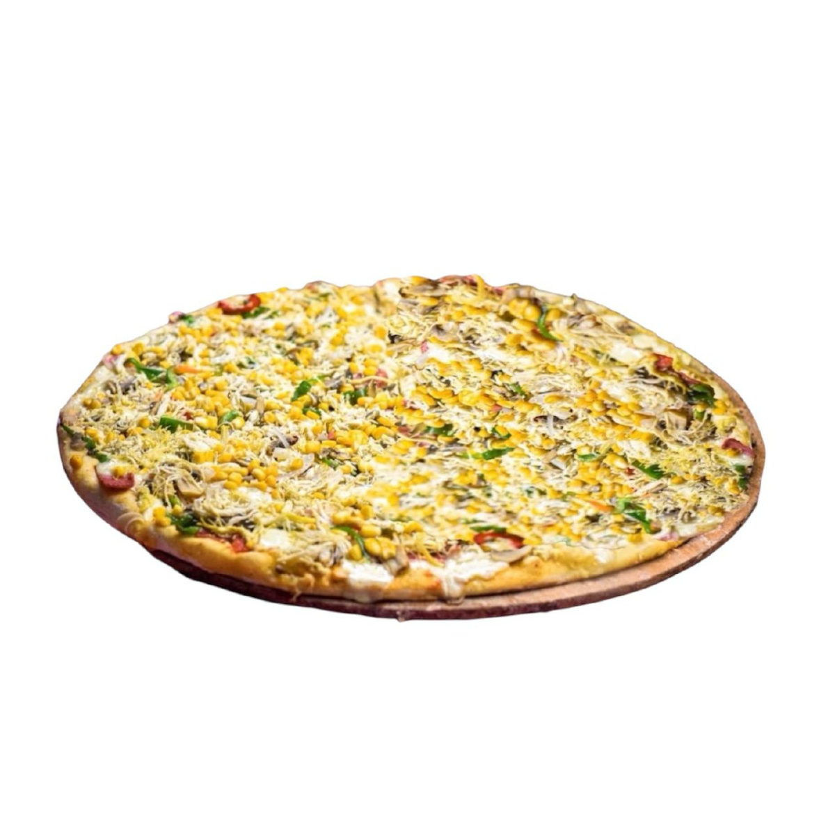PIZZA CON QUESO MOSARELLA - SALAMI-POLLO-PIMENTON VERDE - PIMENTON ROJO - CEBOLLLA BLANCA - CHAMPIÑON Y MAIZ CON POSIBILIDAD DE DIVIDIRSE DE 8 - 12 - 16 PORCIONES