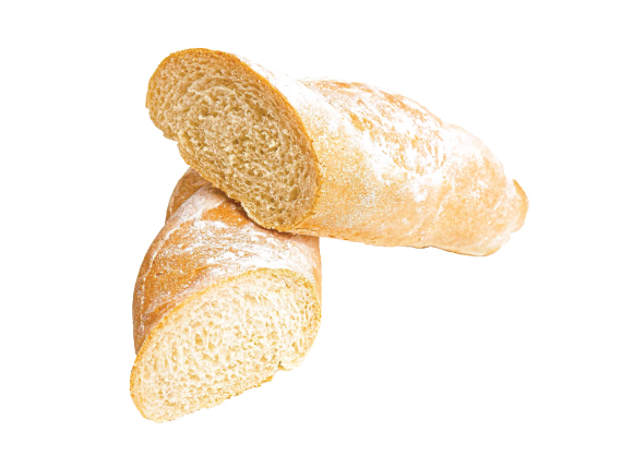 6 unidades de Pan baguette de masa madre, sin azúcar, sin huevo, sin mantequilla, sin leche. Recién horneado.