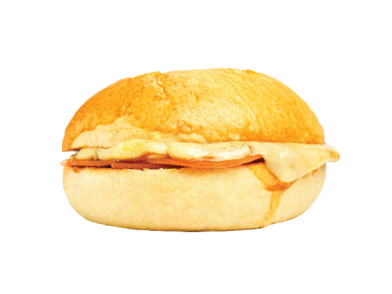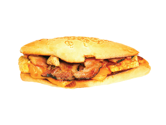 Pan mozzarella, tocineta, huevo y cheddar.