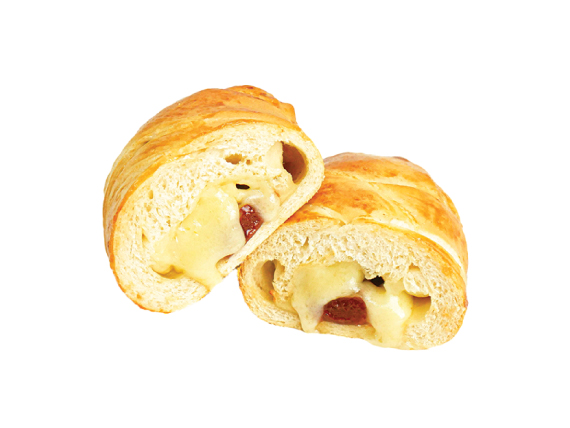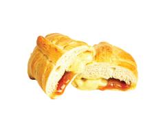 Pan relleno con queso mozzarella, queso costeño y bocadillo. Recién horneado.