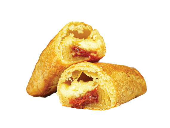 Pastelito de hojaldre bocadillo y queso. Recién horneado.