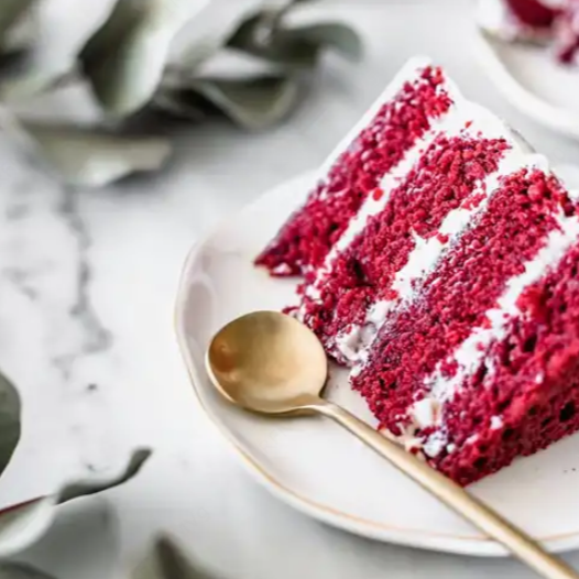 Clásica torta de color rojizo con un ligero sabor a cacao.