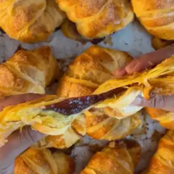 Pastelito hojaldrado relleno de queso y dulce de leche (arequipe).