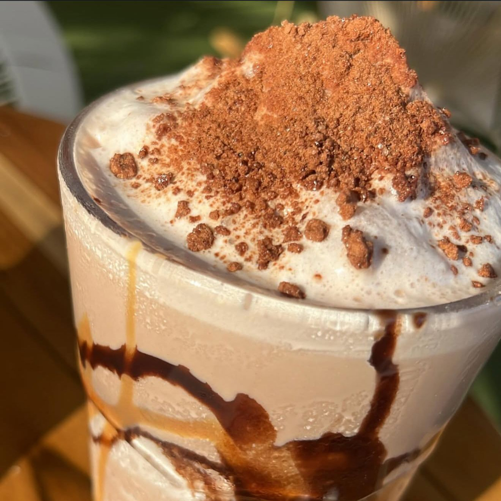 Café frío batido con hielo hasta obtener una consistencia cremosa.