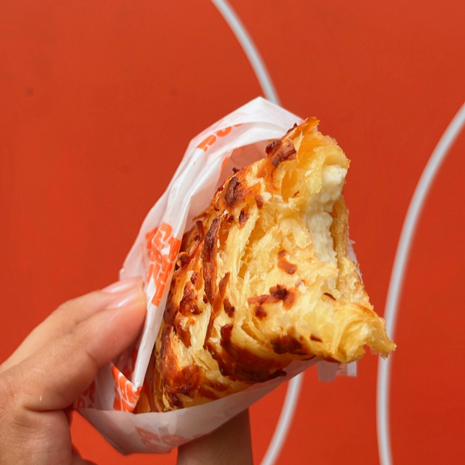 Pastelito hojaldrado relleno de queso y dulce de leche (arequipe).