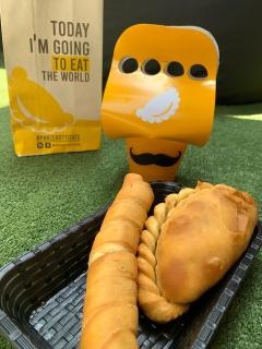 Panzerotti, relleno de queso costeño, salchicha ranchera, maíz tierno salsa tártara y BBQ.