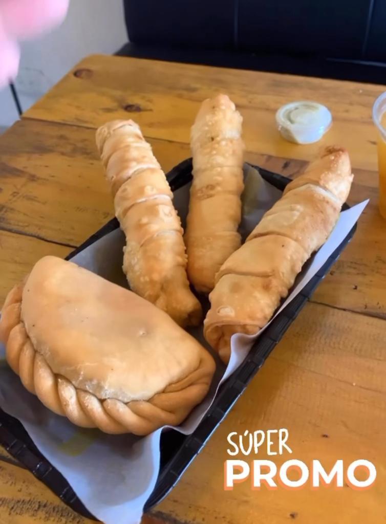 Panzerotti, relleno de queso costeño, jamón, piña, salsa tártara y BBQ.