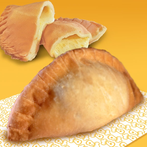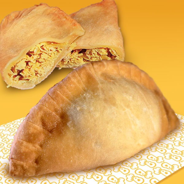 Empanada rellena de salchicha, tocineta, queso mozzarella y salsa pomodoro.