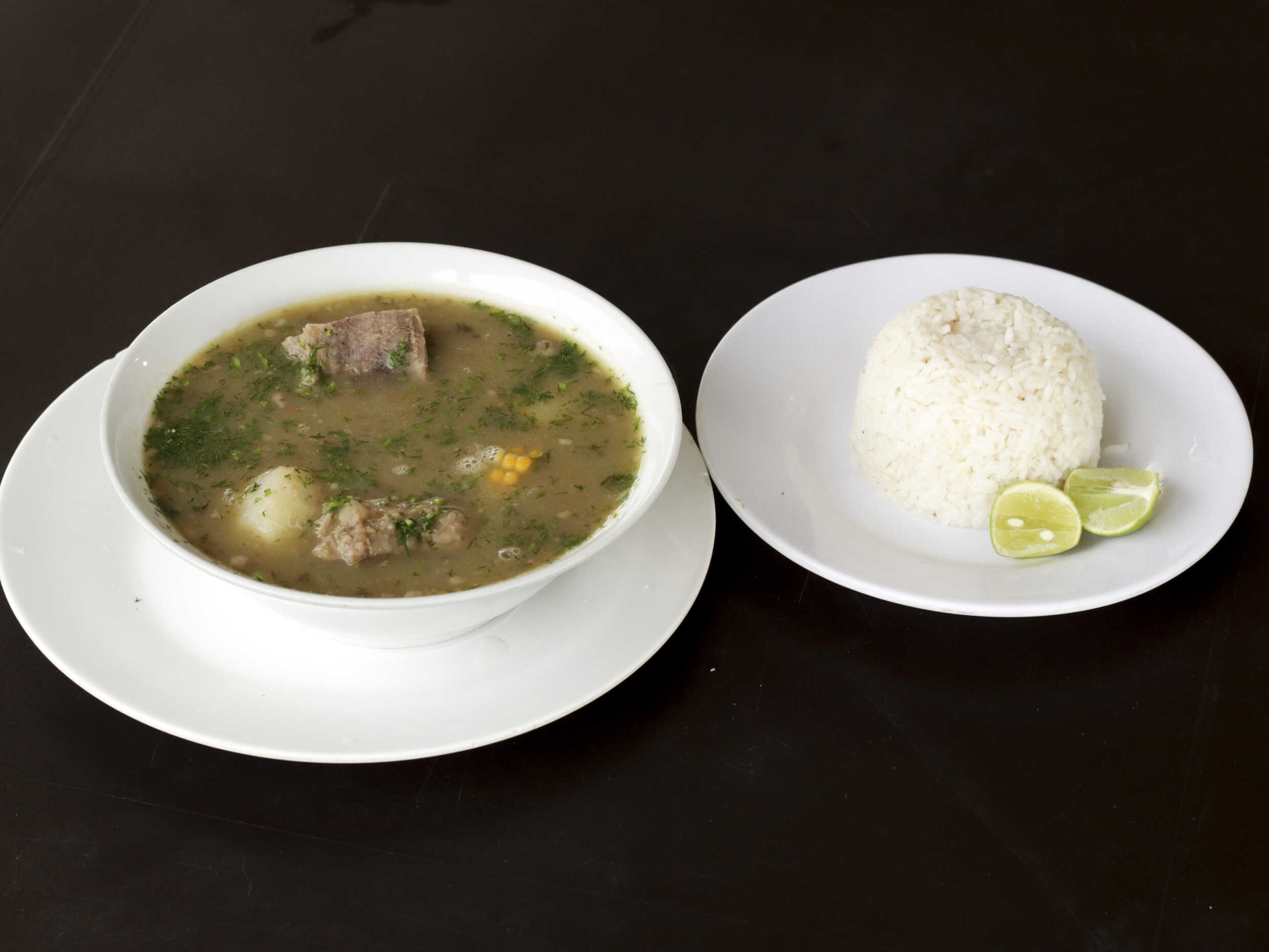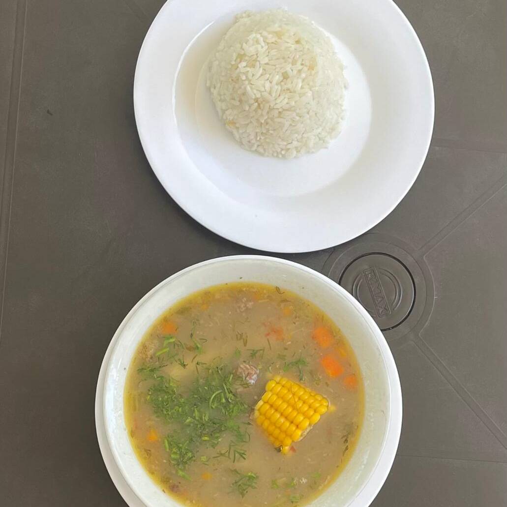 Caldo de costilla con arroz blanco.