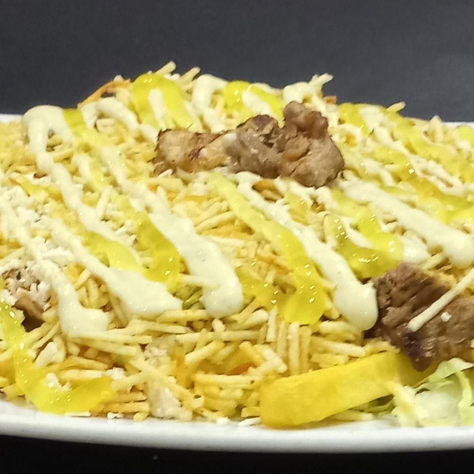 Lechuga, queso costeño, papa chongo, mozarela, salsa tártara y salsa piña