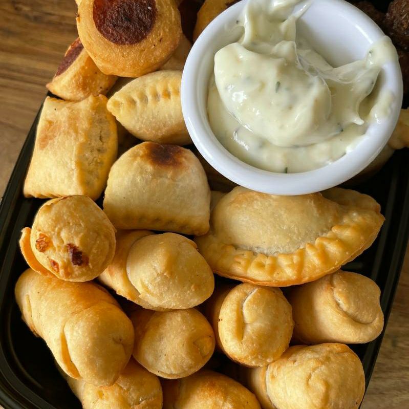 Caja surtida dedito de queso, empanadas, raviolis, salchirrollo y Salsa de la Casa