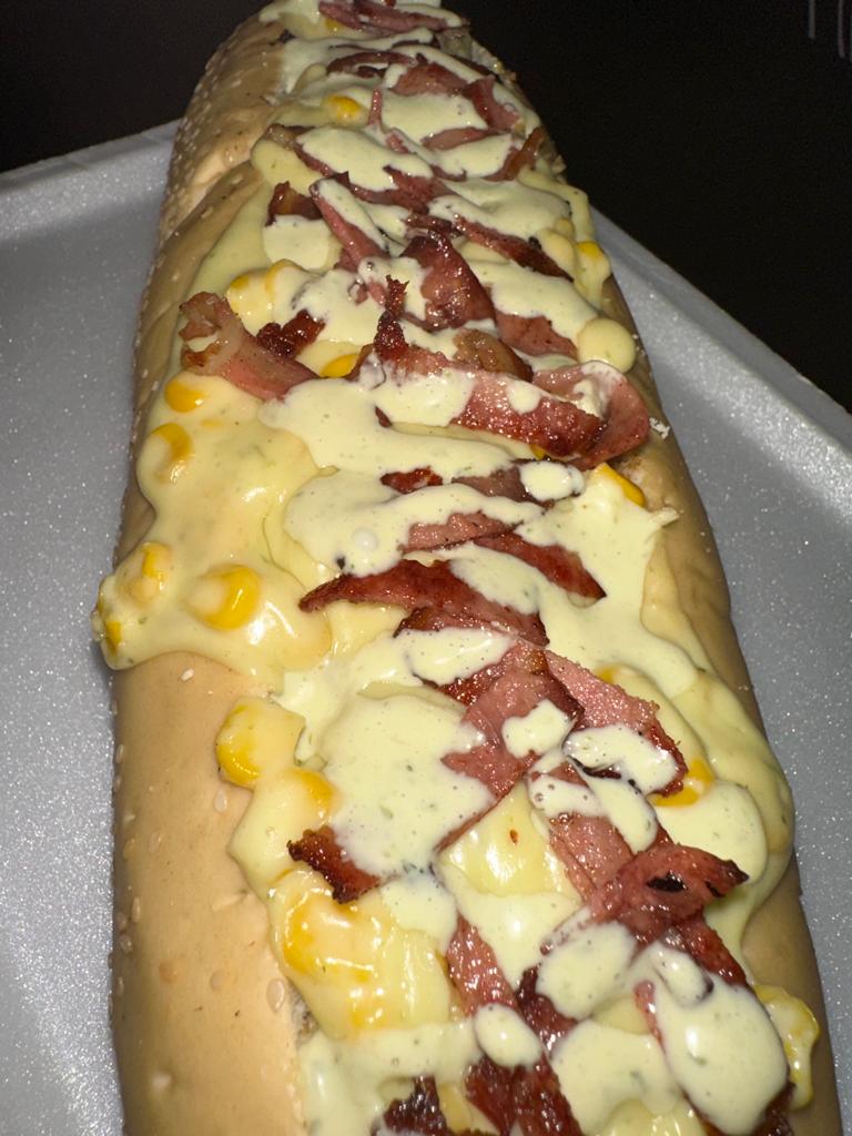 Trae: Pan, Mozarrella, Papas Fritas, Salchicha, Queso Costeño, Chongo, lechuga, tártara, piña.
