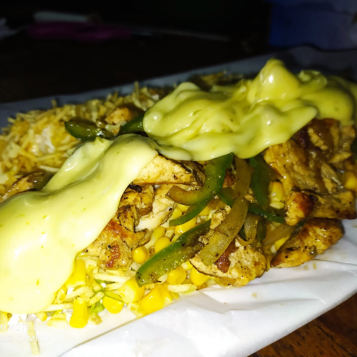Maíz, lechuga, pollo, carne, chongo. Queso Costeño. salsas (tartara)