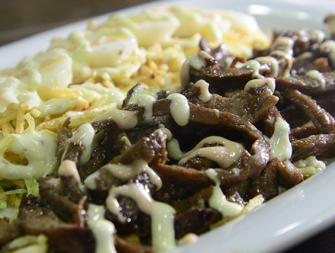 Trae: carne parrillada, pan fresco, jamón, gratinado.