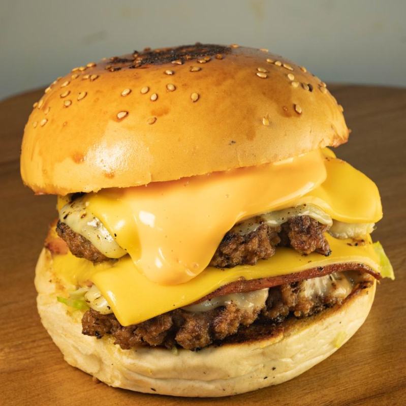 Hamburguesa con dos carnes de 90-110g, Queso, Jamon , Vegetales y Salsas