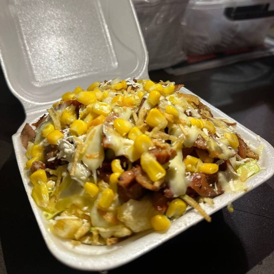 Trae: Salchicha Ranchera, Maiz, Papas Fritas, Lechuga, Salsas.
