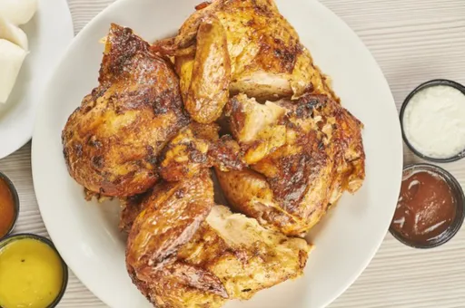4 presas de Pollo Asado . Pídelo con cualquiera de estos acompañamientos (papas cocidas o bollo).