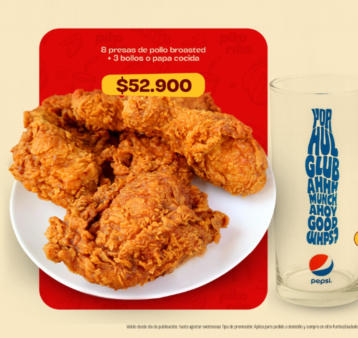 Combo Pollo Broasted Entero (8 presas)+3 bollos o papa cocida (obsequio vaso coleccionable postobón hasta agotar existencia)