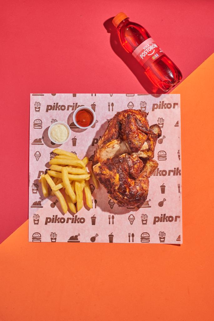 Combo Pollo Asado 1/2 (4 Presas), acompañado de papas a la francesa (100gr) y gaseosa 250 ml (Sabor sujeto a disponibilidad)