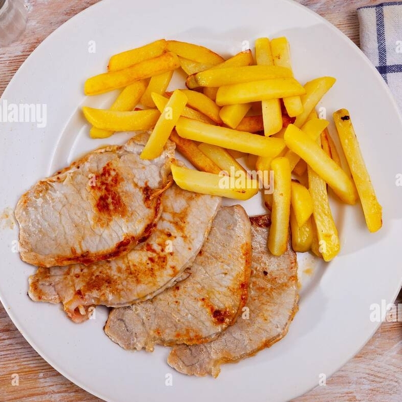 150gr lomo de cerdo más 250gr papás francesas y ensalada