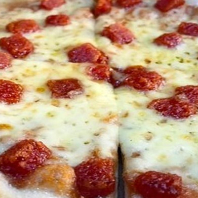 Pizzeta de 27CM, 8 Porciones,Queso mozzarella, chorizo, butifarra, pimentón.