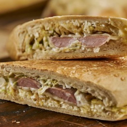 Pan, salchicha, queso costeño, papa chongo tartara y salsa piña