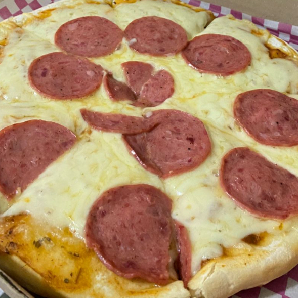 Pizza de 27cm , 8 porciones,Queso mozzarella, salami.