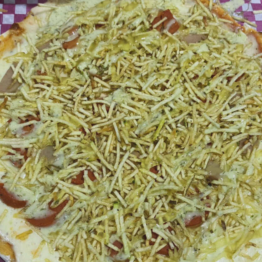 Pizza pepperoni 8 porciones 27 CM y perro a la plancha