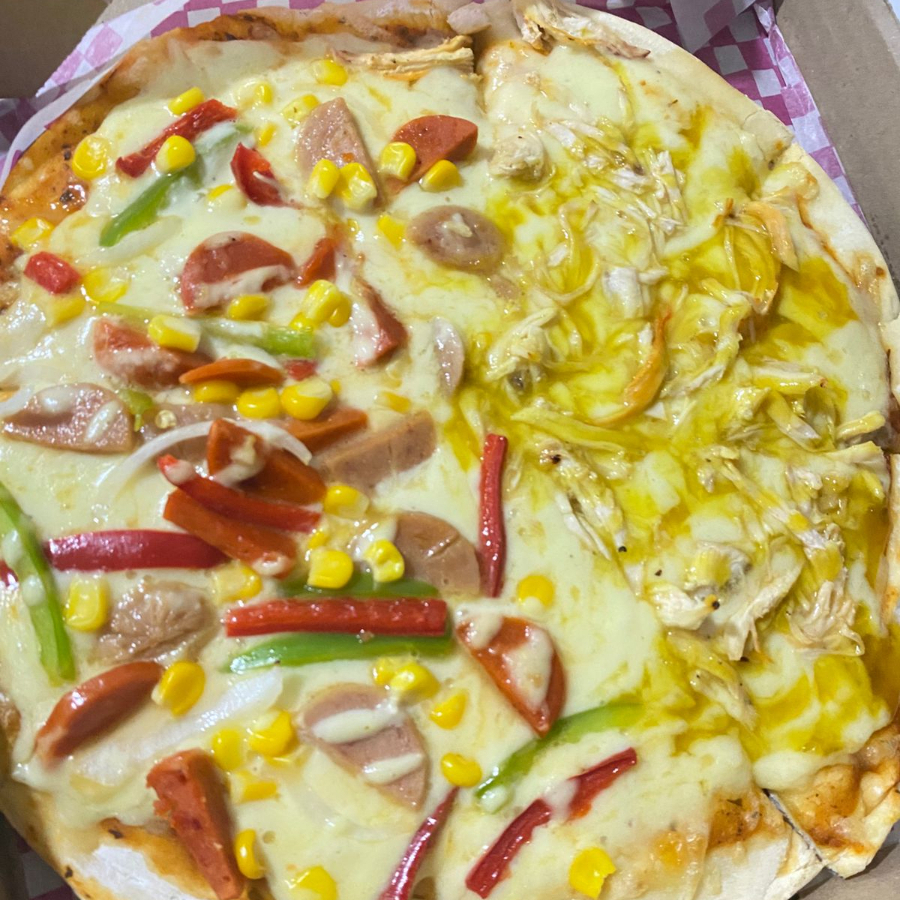 Personaliza tu pizza combinando dos sabores del menú.
