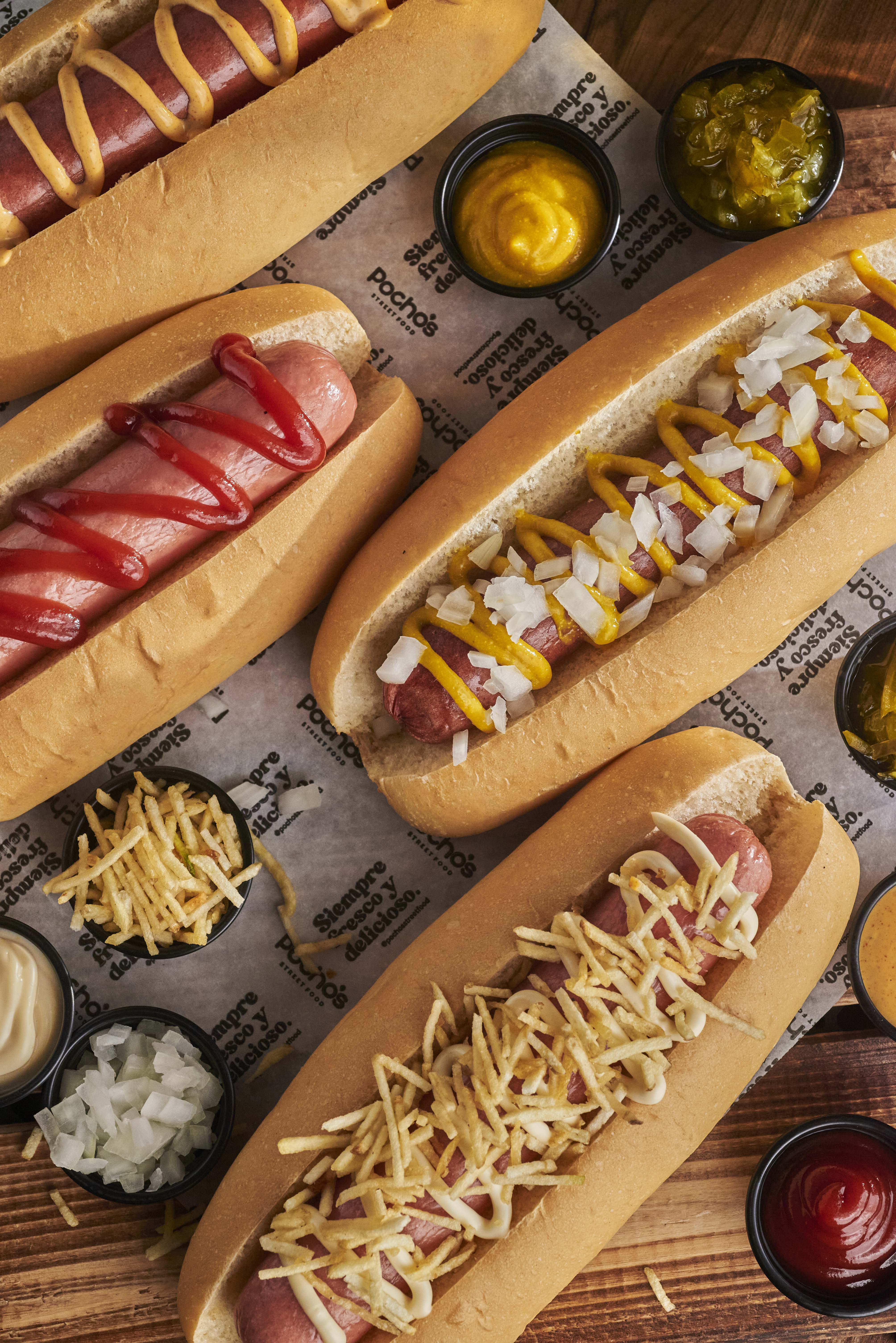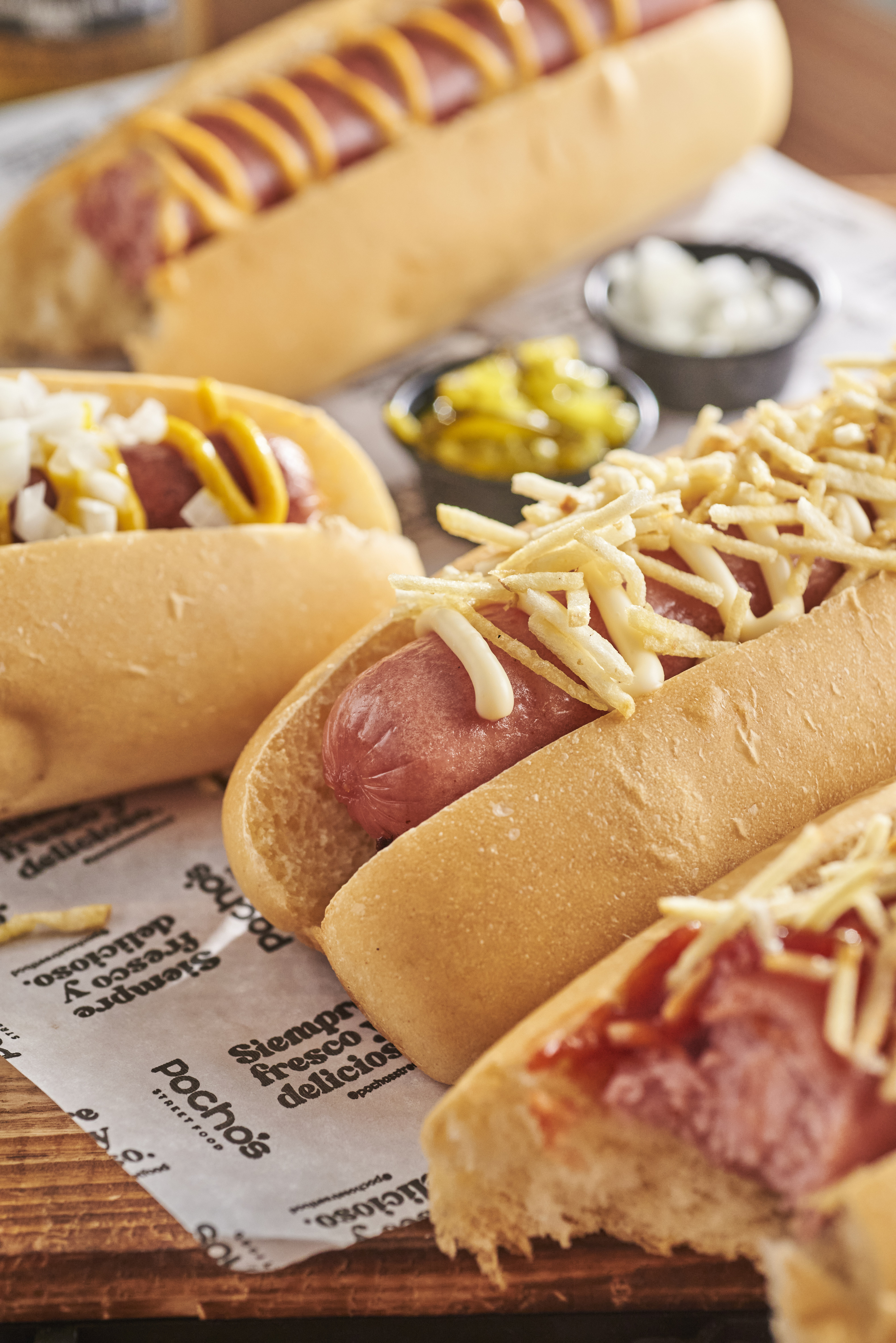 Pan de la casa, salchicha premium americana y salsas al gusto.