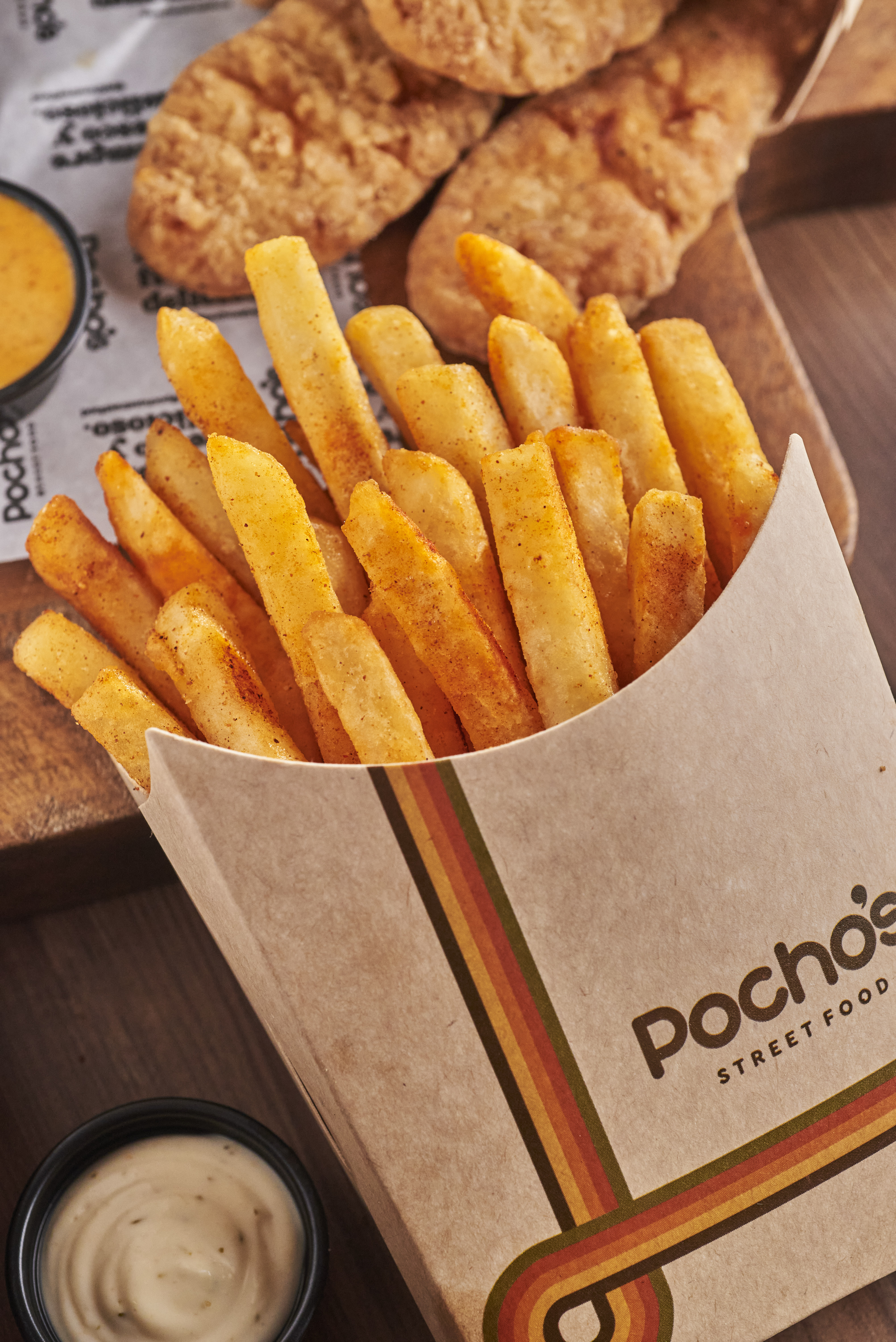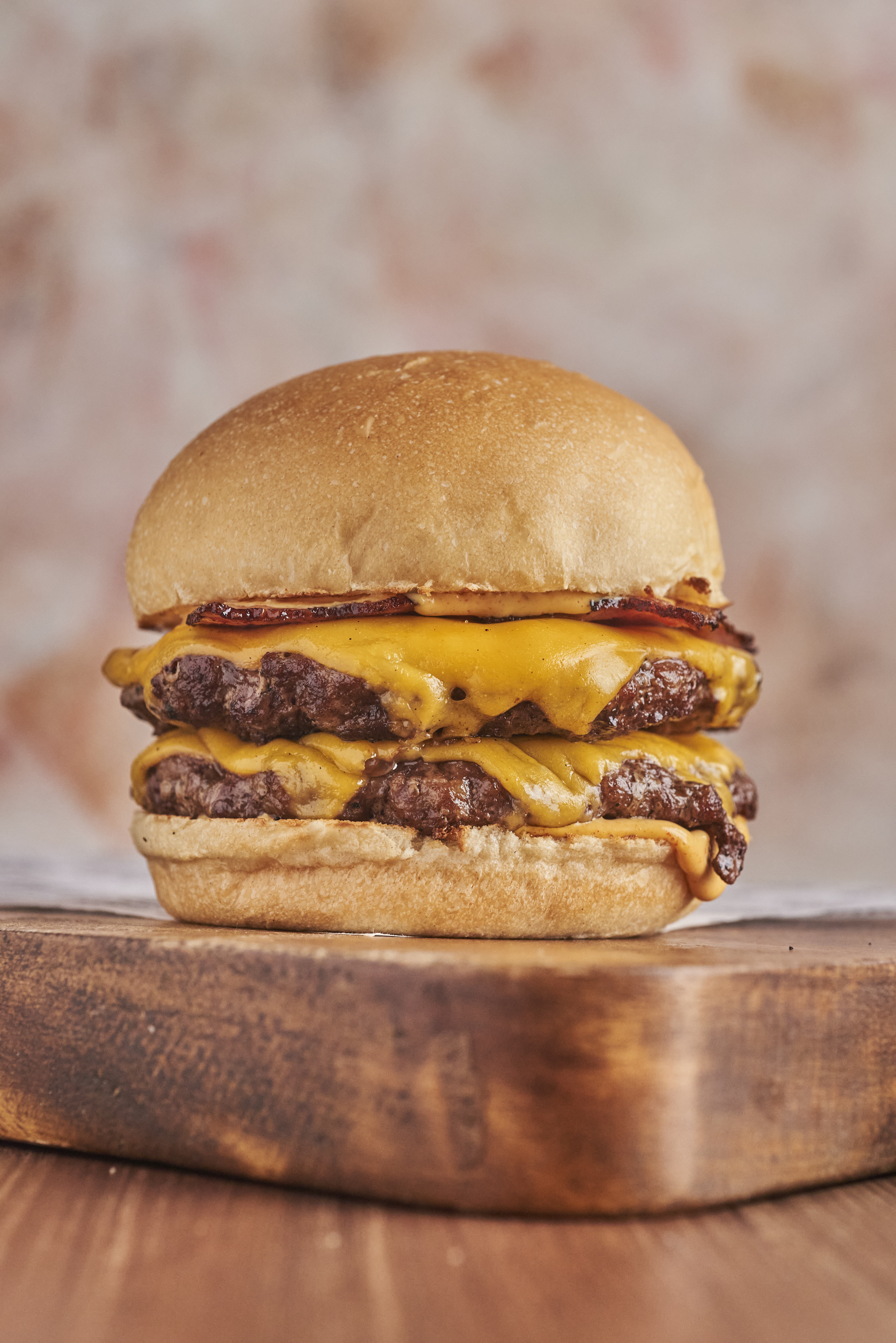 Pan de la casa, doble carne 100% de res, doble tocineta ahumada, doble queso cheedar, verduras frescas y salsa Pocho's.