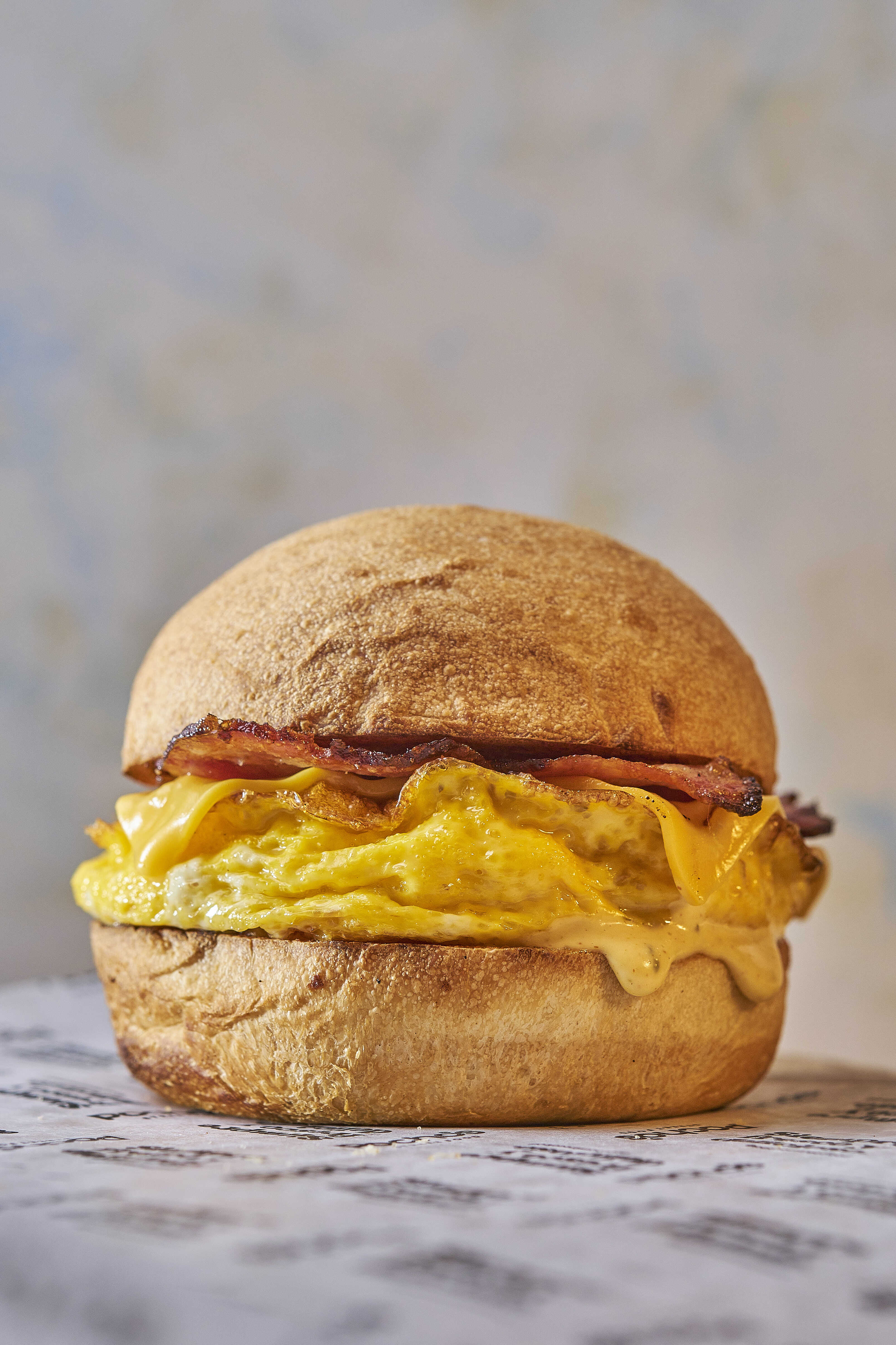 Pan de la casa, huevo, tocineta ahumada, queso cheedar y salsa Pocho's.