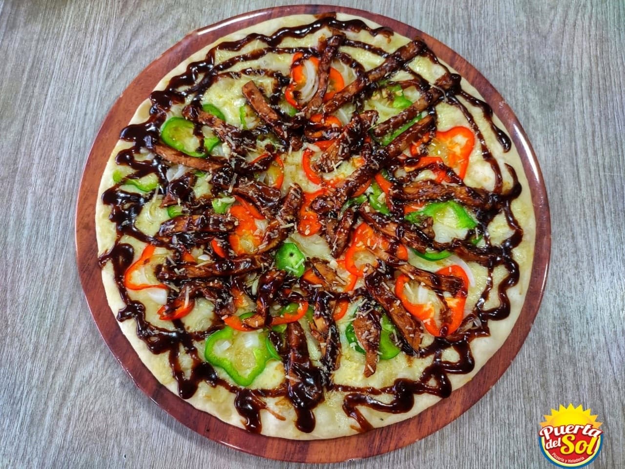 Pizza 8 porciones. Ingredientes: selecciona 4 carnes y verduras a su gusto.