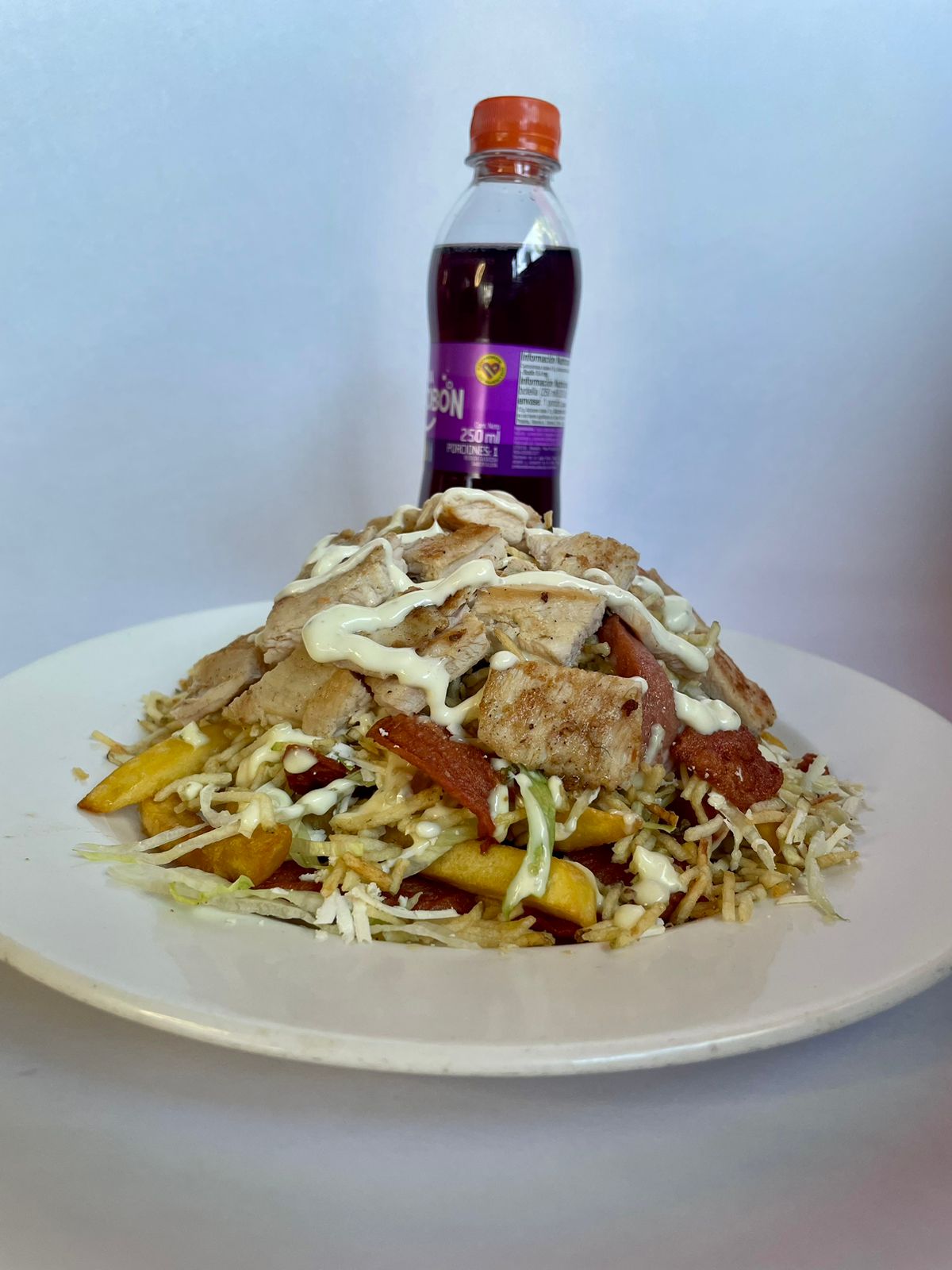 Salchipapa de Pollo acompañado de gaseosa 250 ml