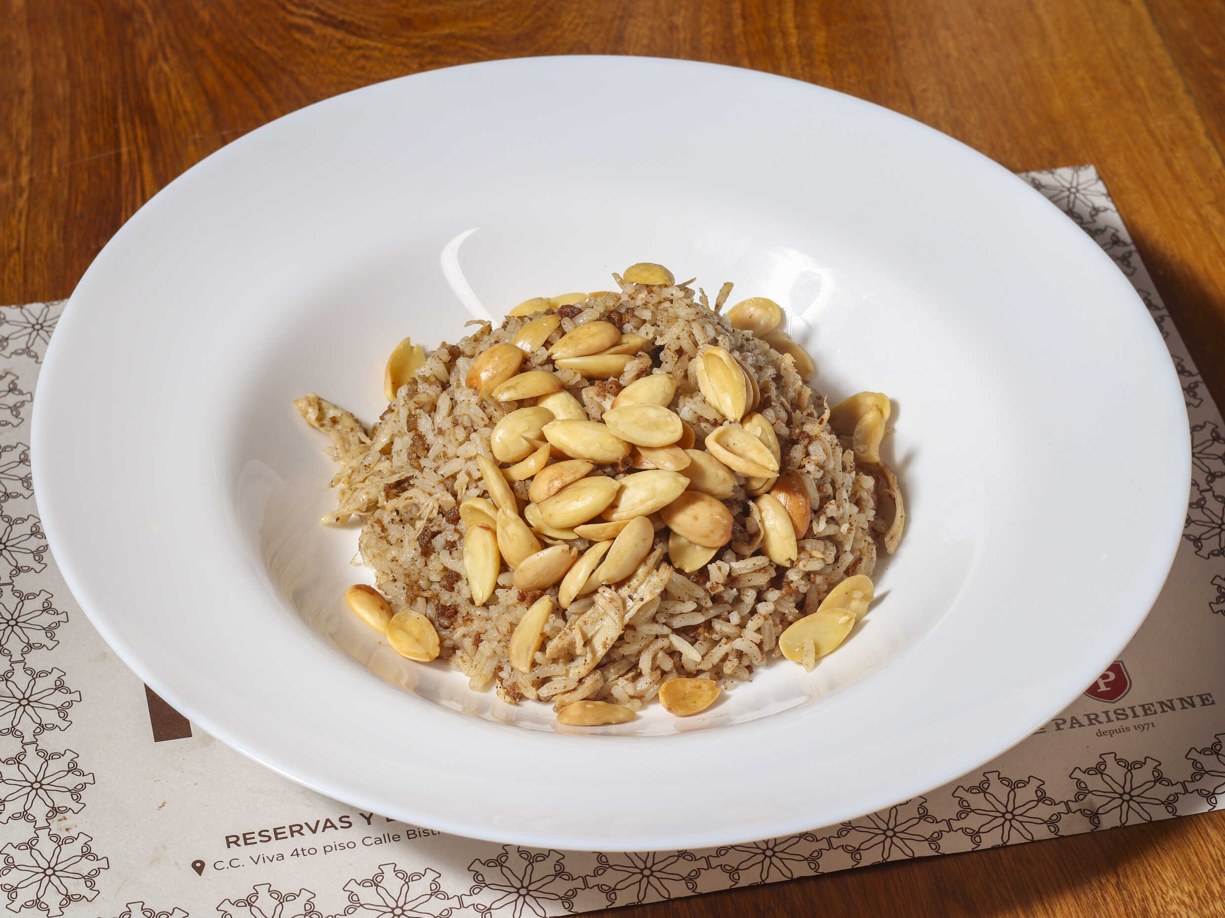 Arroz de almendras, salteado en mantequilla con almendras y especias.