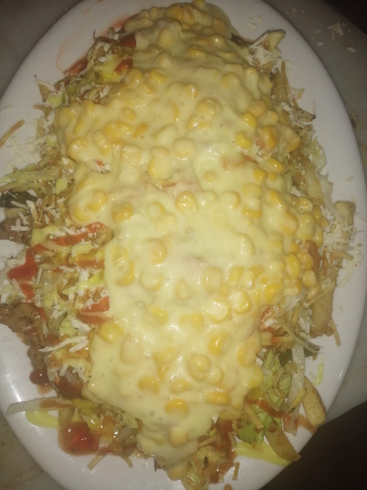 Papas a la francesa, salchicha trozos de pechuga de pollo, chorizo, butifarra, trozos de carne de res asada, lechuga, queso costeño, papa chongo, , salsa tártara, salsa de la casa.