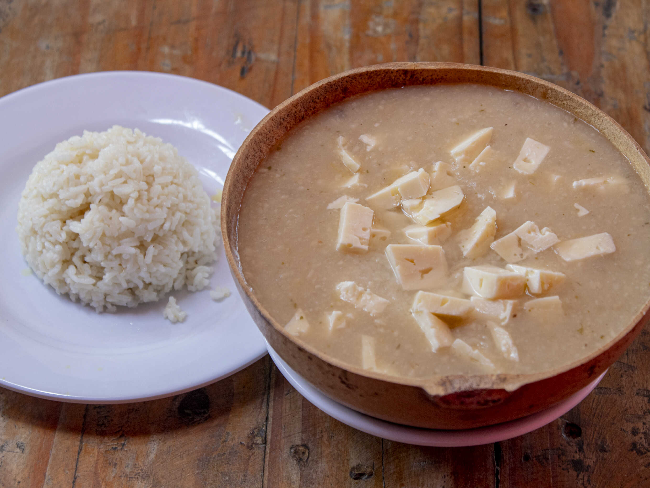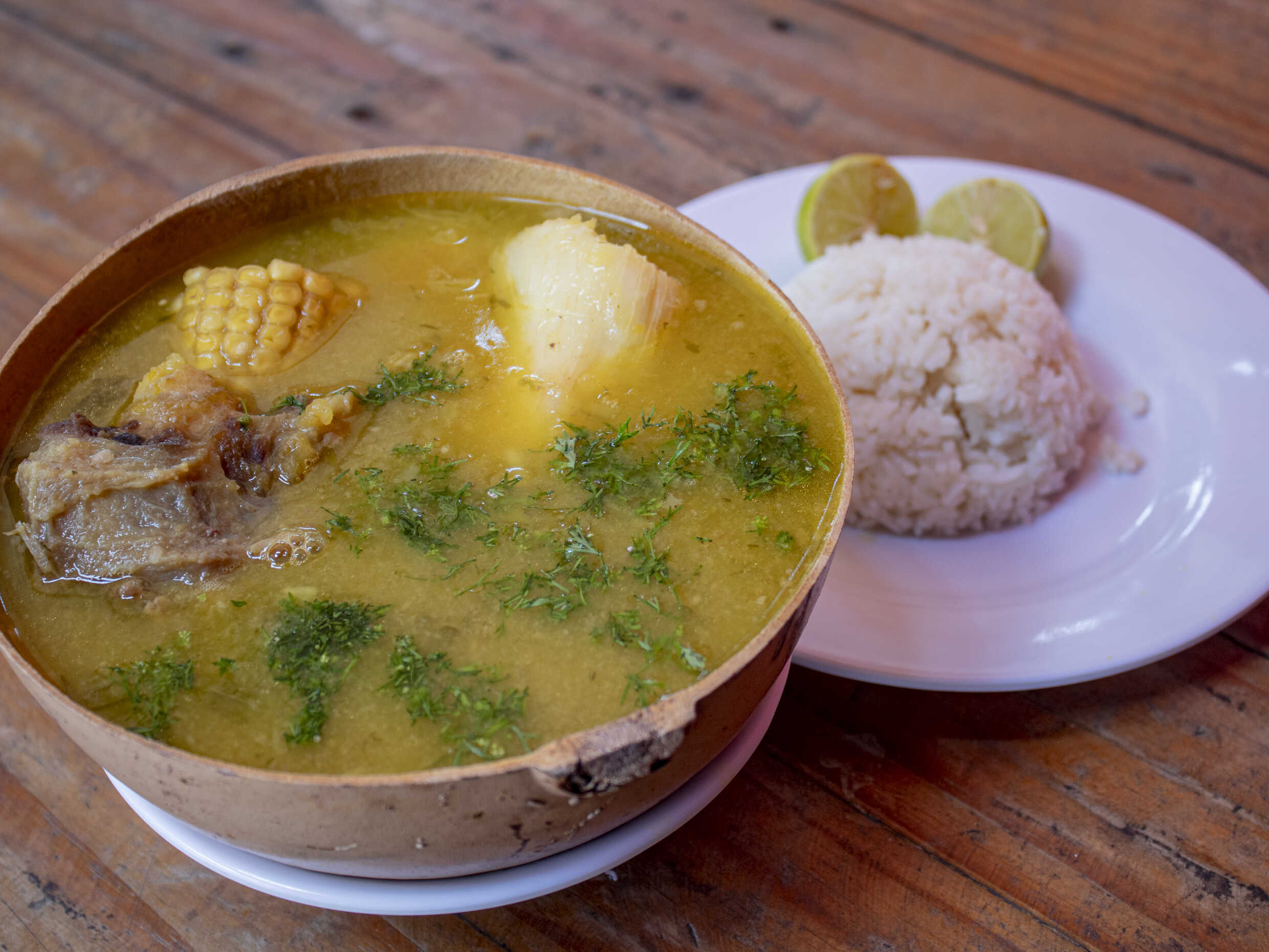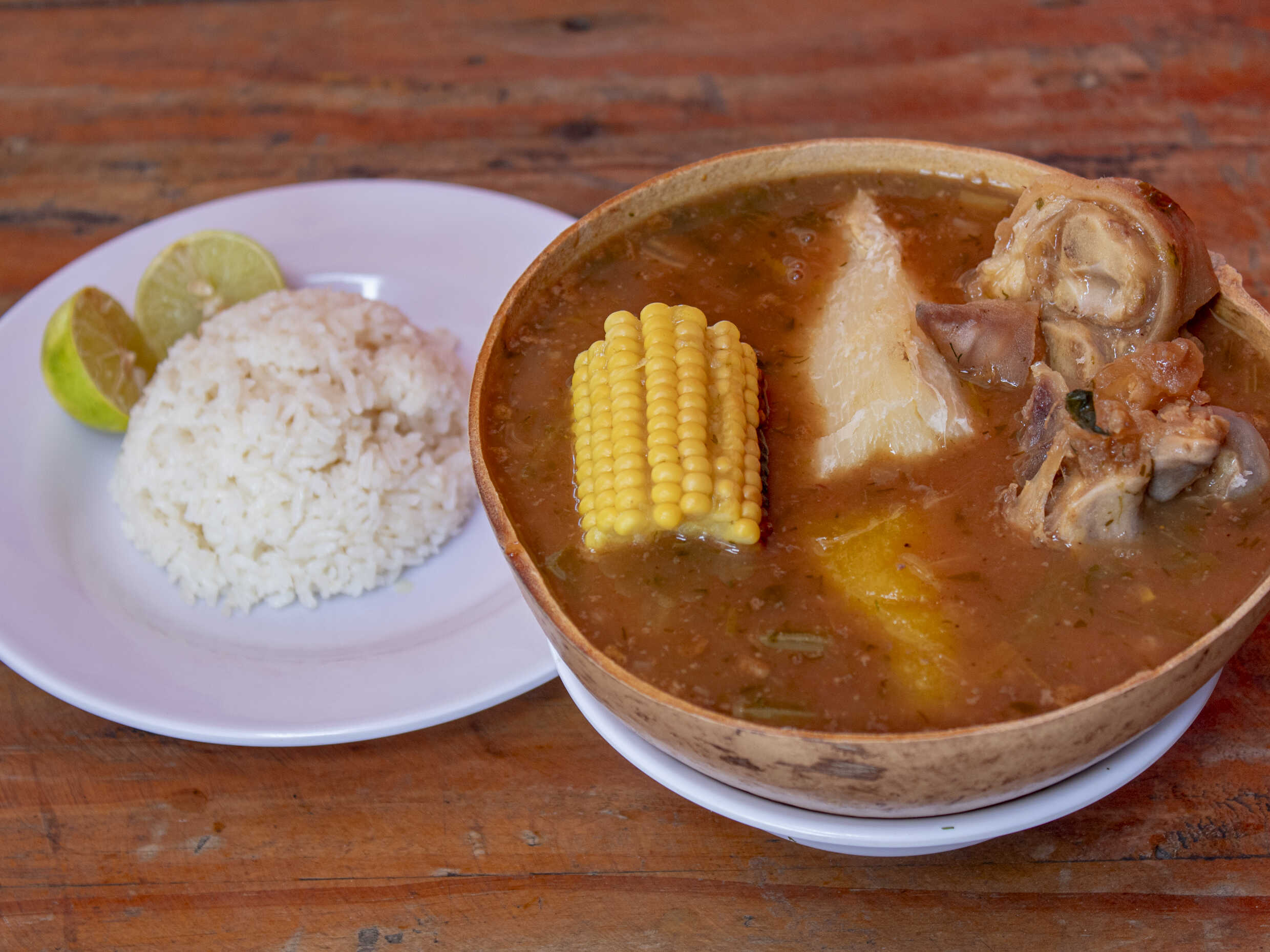 Sancocho de Costilla, Acompañado con porción de Arroz y vaso de Guarapo,