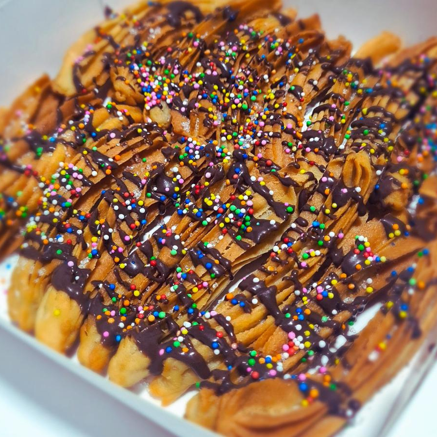 Bandeja de churros Congelados listos para ser cocinados. NOTA: Se deben mantener en congelador y antes de freirlos ponerlos en temperatura ambiente por 5 mins aproximadamente para una mejor cocción