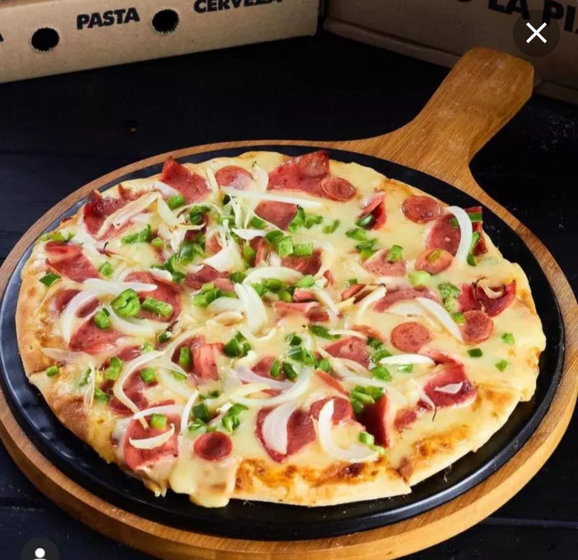 Ingredientes: salami, cabano, cebolla y pimentón verde.