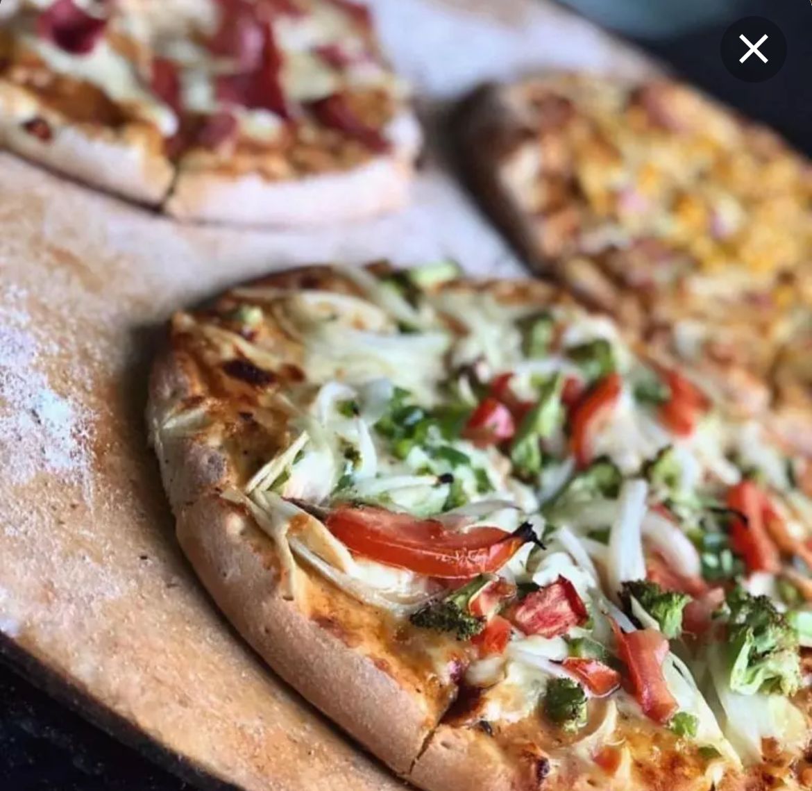 Ingredientes: cebolla blanca en julianas, pimentón verde, brócoli, tomate chonto y salsa de ajo. Acompañada con nuestros queso mozzarella y salsa napolitana.