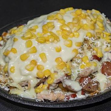 Papa a la Francesa, manguera, carne, pollo, butifarra, chorizo, chongo, lechuga, queso costeño,gratinado de mozzarella, maíz, tocineta, salsa tártara, piña