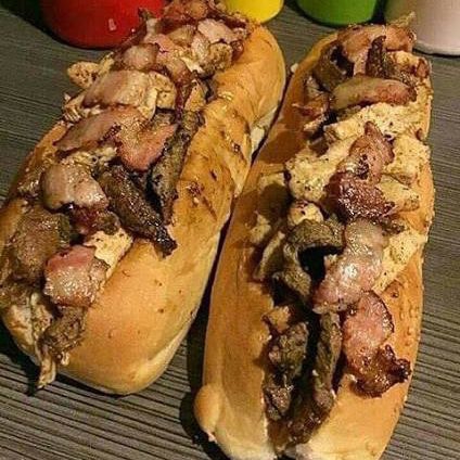 Pan Super, salchicha, lechuga, chongo, carne, pollo, tocineta, maíz, queso