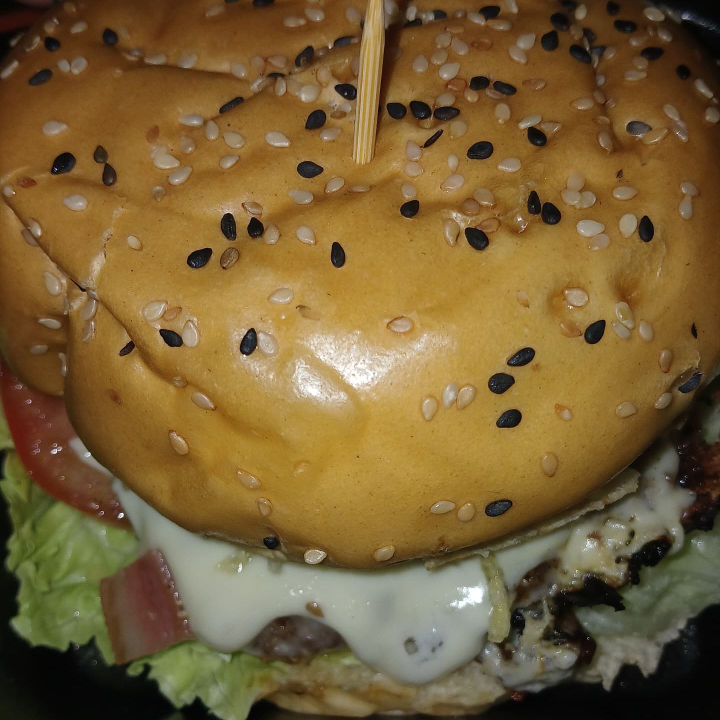 pan artesanal, carne, lechuga, cebolla, tomate, queso mozzarella, salsa de la casa