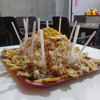 Salchipapa TRIFASICA Chorizo Butifarra y Manguera,