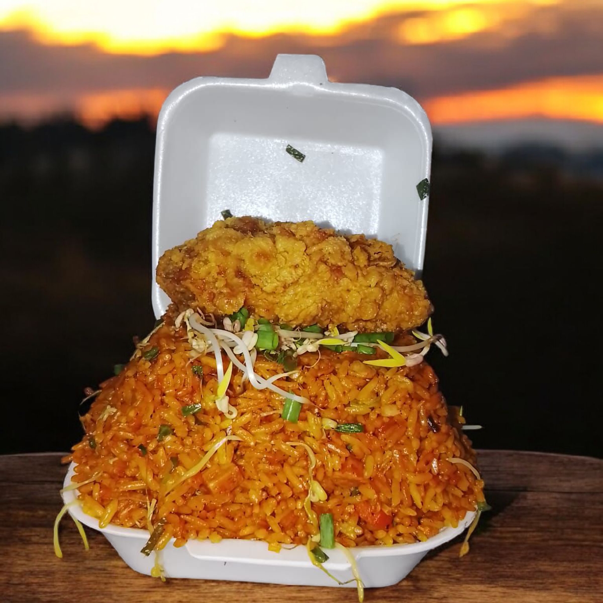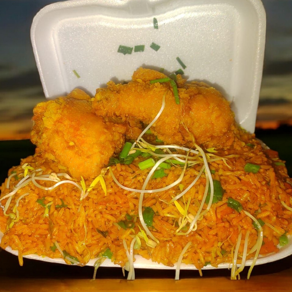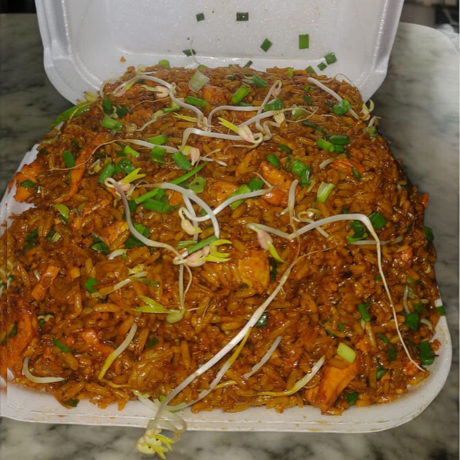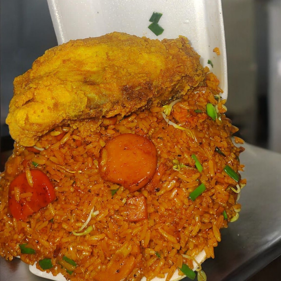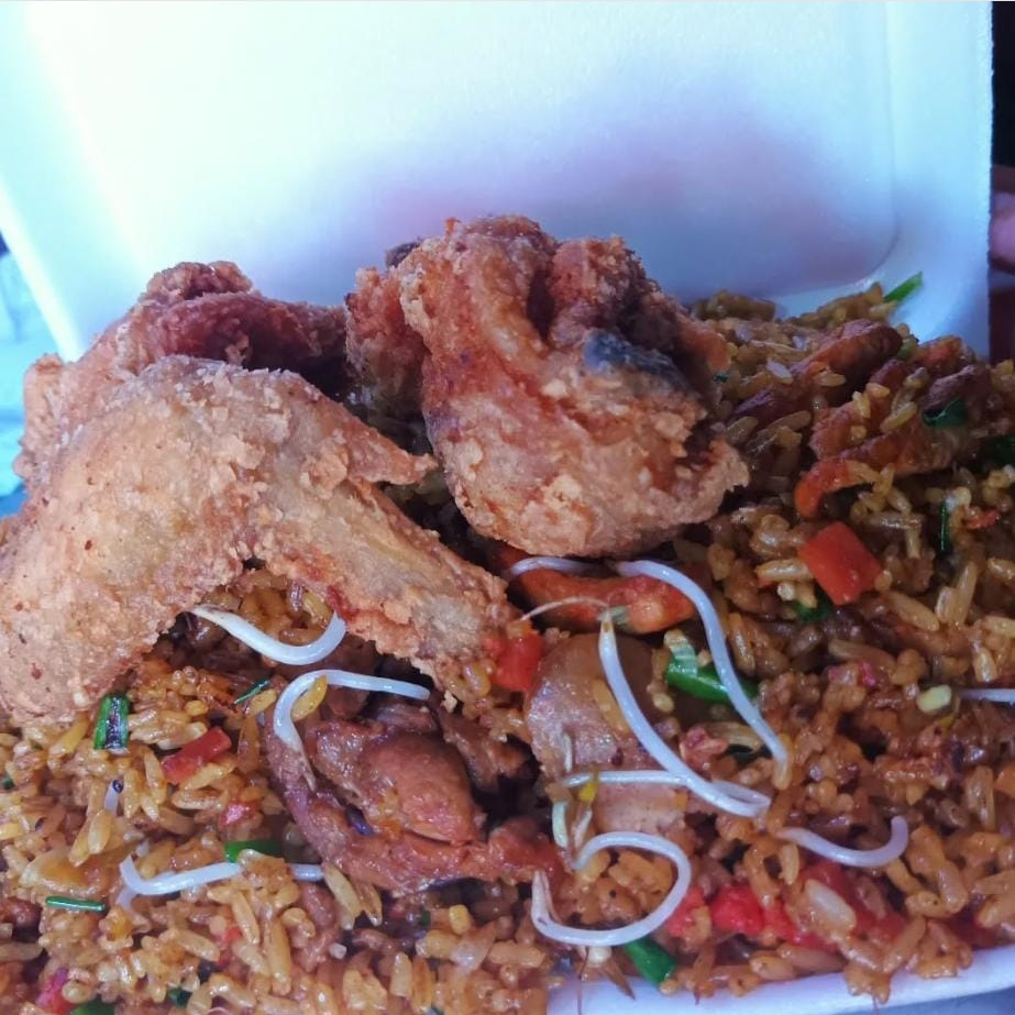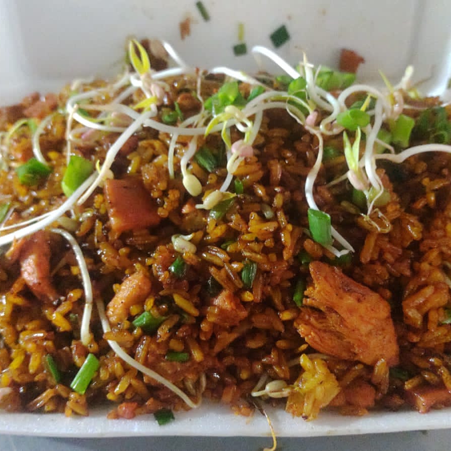 Pollo, cerdo, camarón, jamón, huevo y pollo broaster.