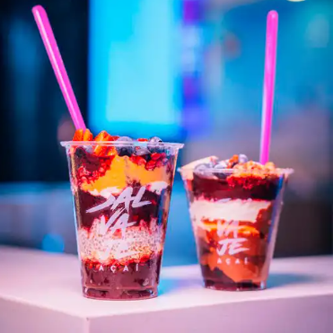 1 Saludable bowl de açaí y 1 salvaje bowl de açaí.