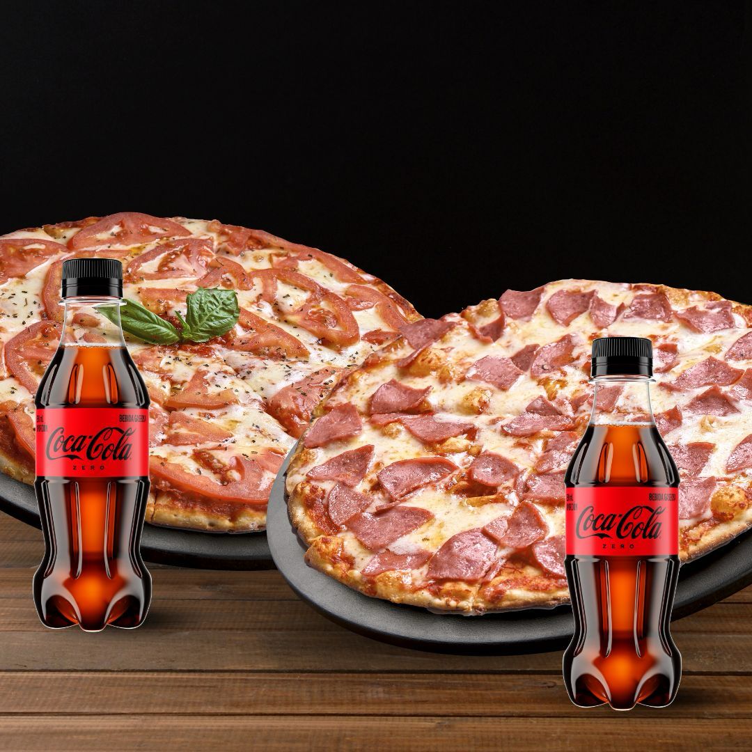 dos pizzas personal 20 cm (6 porciones) + 2 bebidas coca cola zero 250 ml