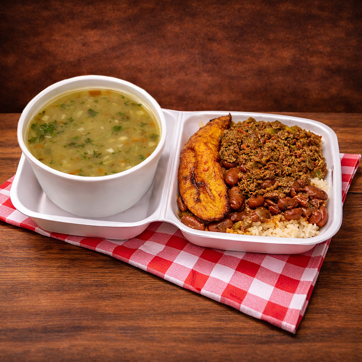 Caserito de Carne Guisada Sopa de Costilla